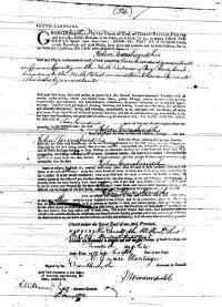 We were able to find deeds or plats on only four pieces of property that we can attribute to John Townsend (1740-1786). The earliest record we have found on John Townsend is a South Carolina plat dated 25 October 1771 wherein John Bremar, Esq. DSG conveyed by survey “unto John Townsend … 200 acres situate in Craven County the NE side of big ready Creek bounded to the N.W. … by the said Creek and Swamp and all other sides by vacant land … Surveyed on the 25th day of Oct 1771. (Recorded on 5 May 1772) Signed Anthony Pouncey"1 A royal grant for that land was issued on 20 July 1772 to John Townsend as follows: "George the third to John Townshend Two Hundred acres situate in Craven County on the North East side of the Big Reedy Creek, bounding the North West on said Creek and Swamp, on all other sides by vacant lands."2 This grant shows that this land is located on the northeastern side of Big Reedy Creek. This land located very near the border between Cheraw (now Marlboro County) Precinct and Georgetown (now Dillon County) Precinct. The fact that the land was vacant on all sides suggests that this property was remote from other landowners. The location of this land shows it to be some 5 miles east of where Light Townsend (1745-1817) owned 100 acres of land “on Hilson Bay on Head of Muddy Creek” (now Rogers Creek) that he had acquired from his father, Benedictus. The granting of 200 acres also suggests that John had at least three people (one hundred acres for John and fifty acres for two others) in his household.